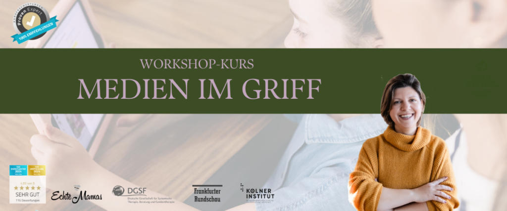 Wie auch du die Medienzeit deines Kindes entspannt gestalten kannst, zeige ich dir im Workshop-Kurs „Medienzeit gestalten. Mit praktischen Alltagsbeispielen und hilfreichen Strategien erhältst du die Klarheit und Sicherheit, die du für einen harmonischen Umgang mit Medien brauchst.